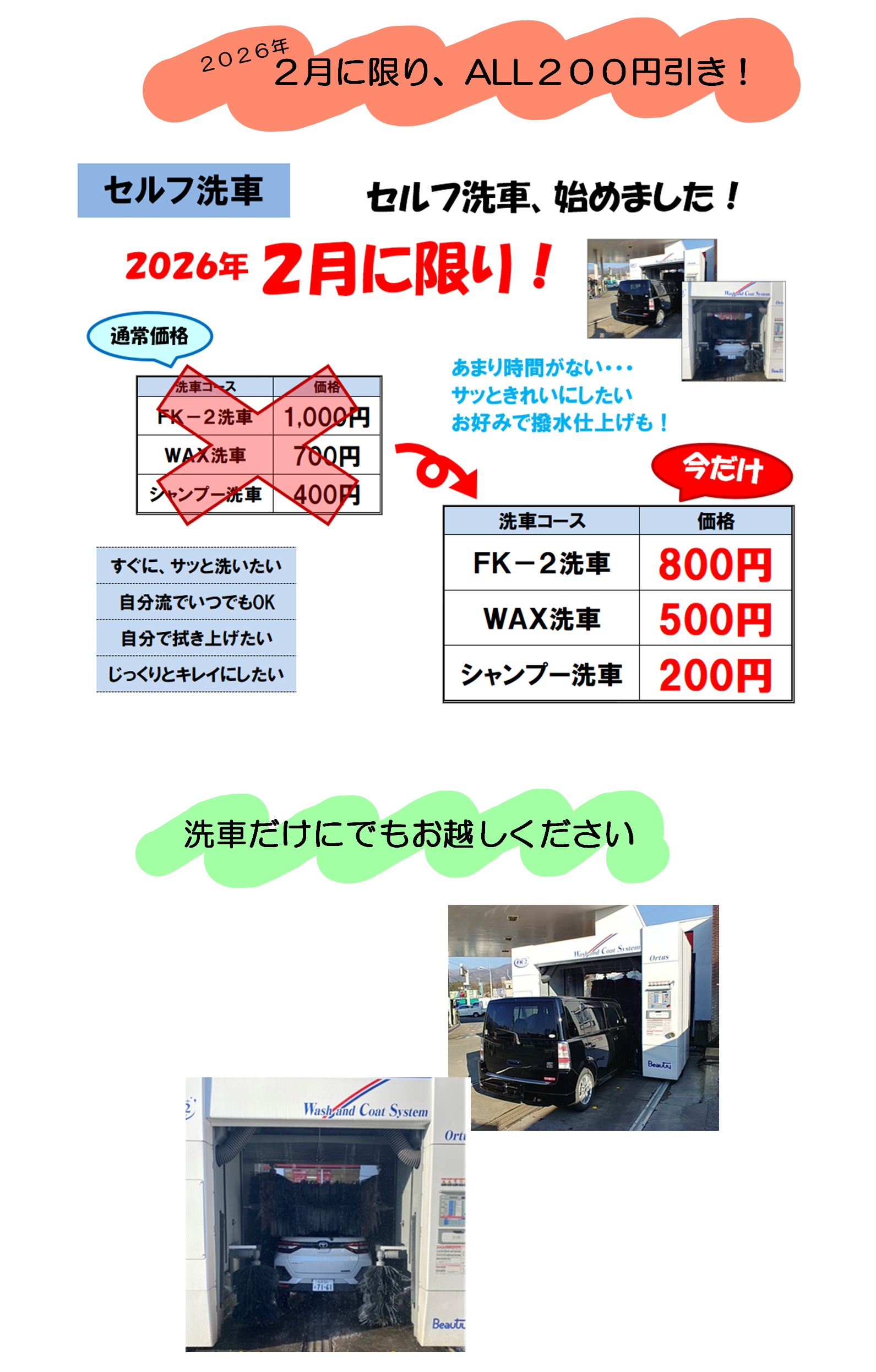伊那インター店、セルフ洗車始めました。
